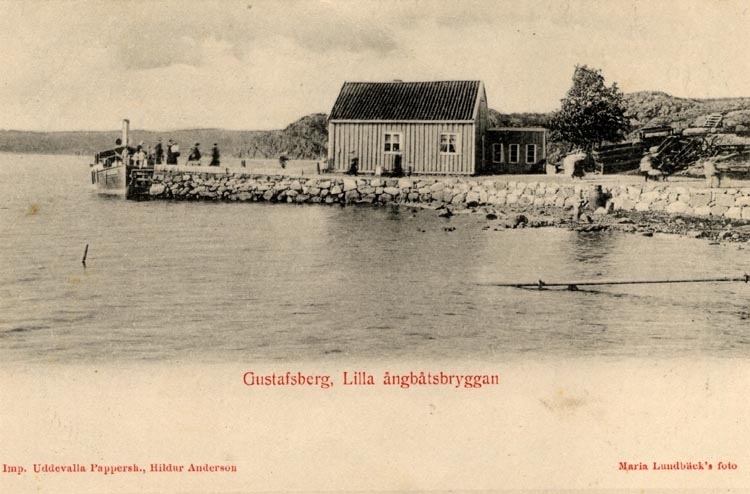 Tryckt på kortet: "Gustafsberg, Lilla ångbåtsbryggan."