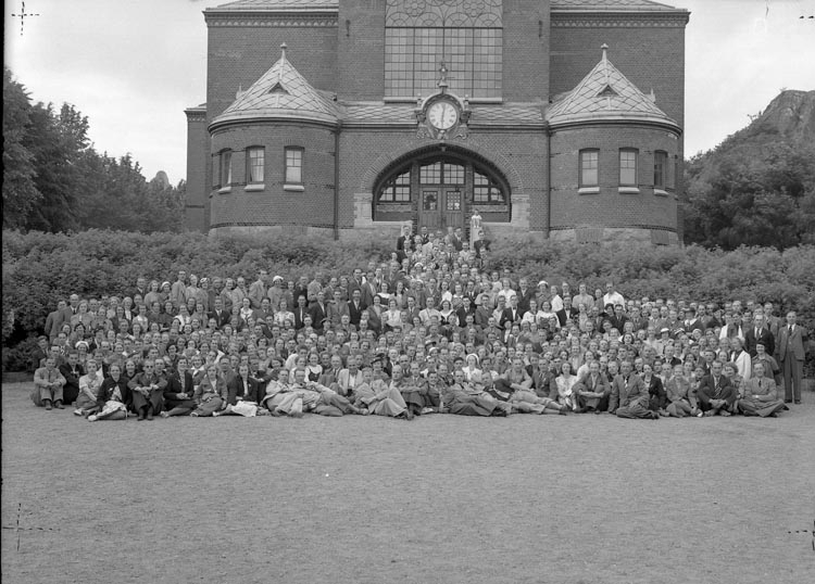 Uppgift enligt fotografen: "Uddevalla. Grupp framför Flickskolan. SGU."