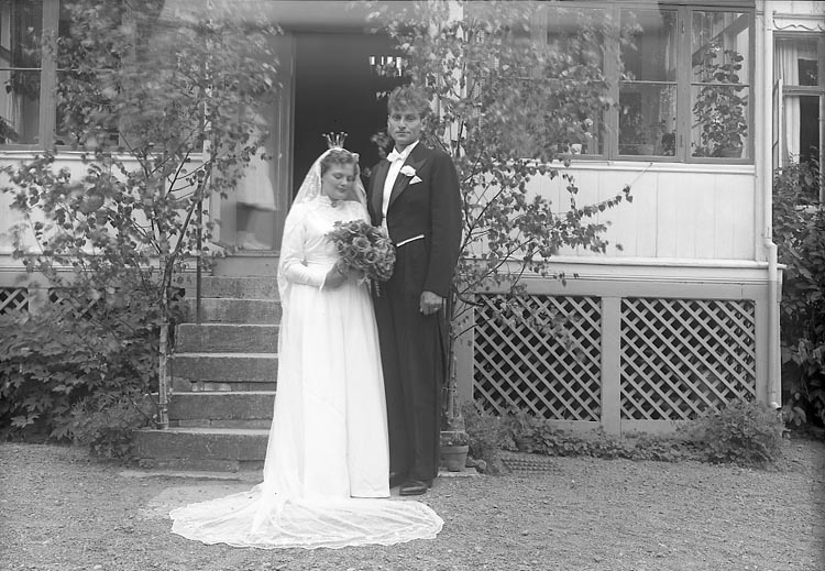Enligt fotografens journal nr 8 1951-1957: "Johnson, Brudparet Johnson - Bengtsson, Spekeröd".