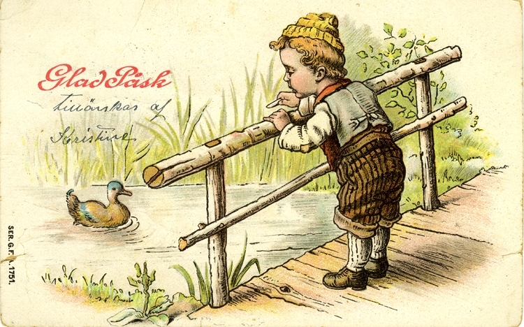 Notering på kortet: Glad Påsk tillönskas af Kristine.