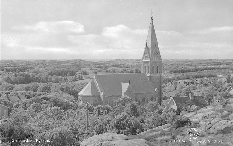 Titel: Enligt AB Flygtrafik Bengtsfors: "Grebbestad kyrkan Bohuslän".