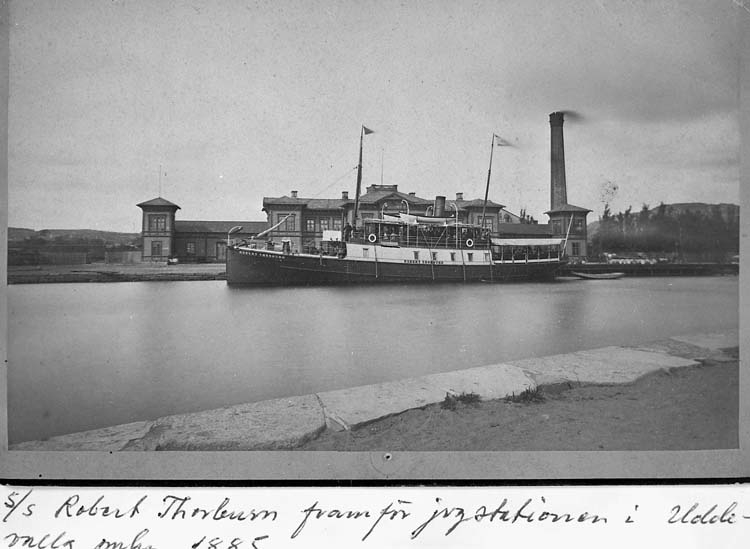 Text på kortet: "s/s Robert Thorburn framför jvgstationen i Uddevalla omkr. 1885".