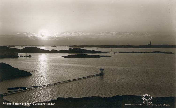 Tryckt text på kortet: "Aftonstämning över Gullmarsfjorden."