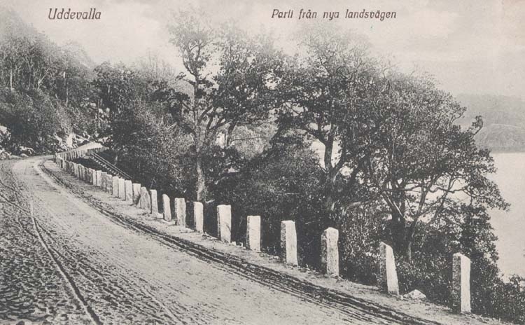 Tryckt text på kortet: "Uddevalla. Parti från nya landsvägen."