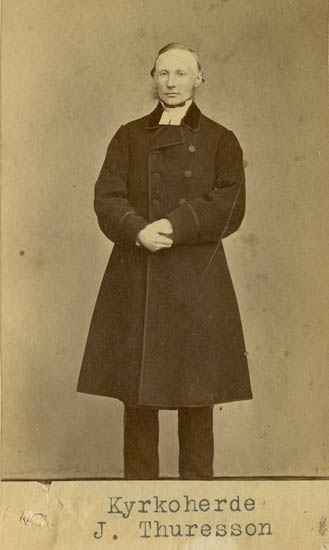 Text på kortets baksida: "Kontraktsprosten och Kyrkoherden Th dr. Jakob Viktor Thuresson i Krokstad. Född 1831.