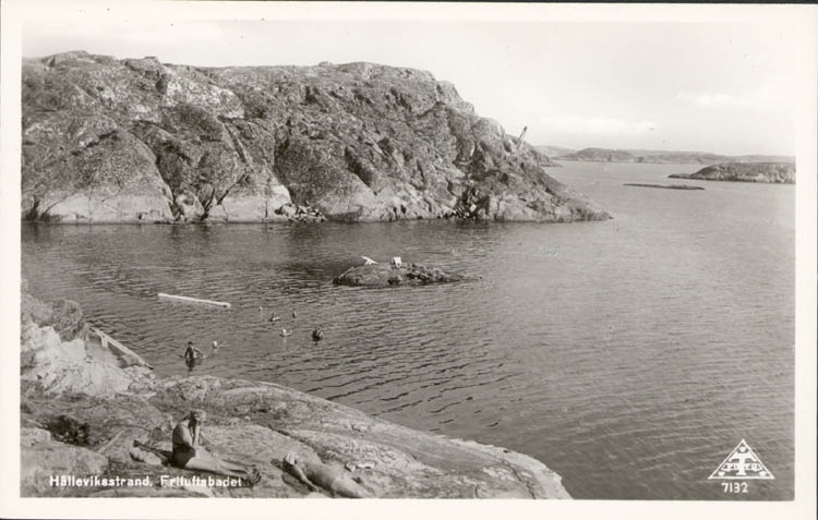 Tryckt text på kortet: "Hälleviksstrand. Friluftsbadet."