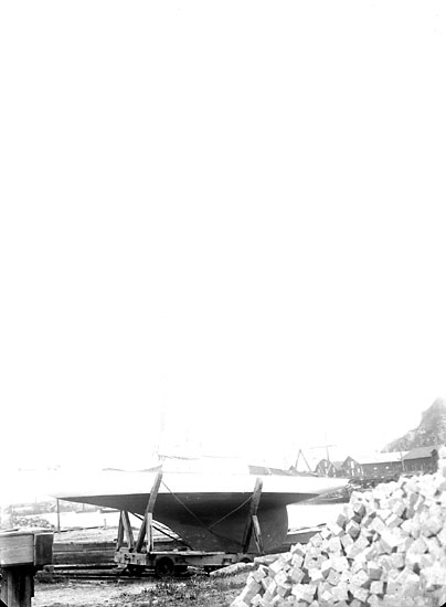 Enligt senare noteringar: "Segelbåt på trallen vid slipen i Uddevalla hamn"