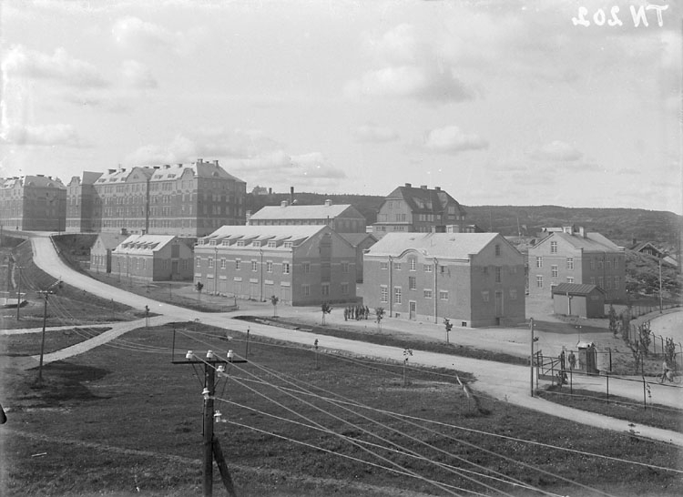 "Bohusläns regemente, förrådshus och kaserner från sjukhustomten." Uddevalla.