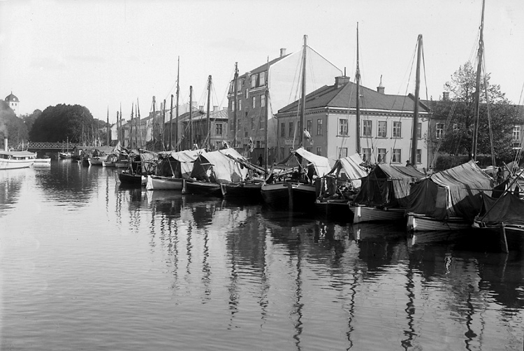Enligt tidigare noteringar: "Fiskebåtar vid kajen väster om järnbron vid S. Hamngatan, Uddevalla."
