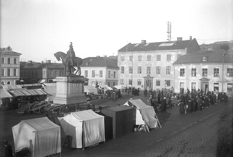 Enligt tidigare noteringar: "Kungstorget, Uddevalla, torghandel. I bakgrunden rådhuset."