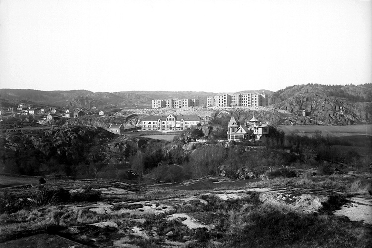 Enligt tidigare notering: "Utsikt från Tureborg med villan Älvkullen, ålderdomshemmet (Österängen) samt längst bort regementet."