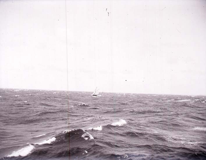 Enligt text som medföljde bilden: "Seglare i storm."
