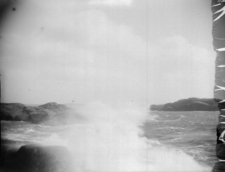 Enligt text som medföljde bilden: "Lysekil. Vid Stångehufud i storm Ön med tobakssten? 26/7 1899."