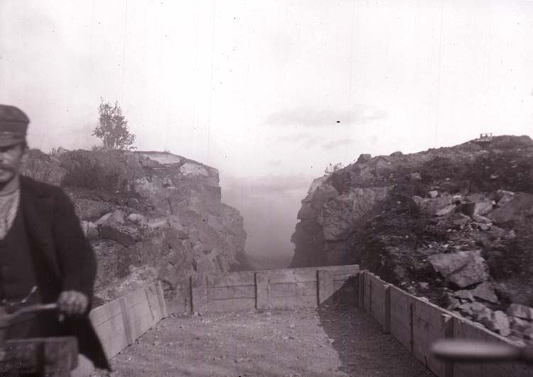 Enligt text som medföljde bilden: "Svarteborg, Bergpass vid Grusgropen Okt 12".