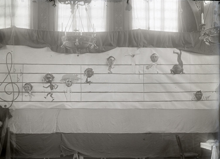 Enligt text som medföljde bilden: "Sällskapsspektakel. Societetssalongen."