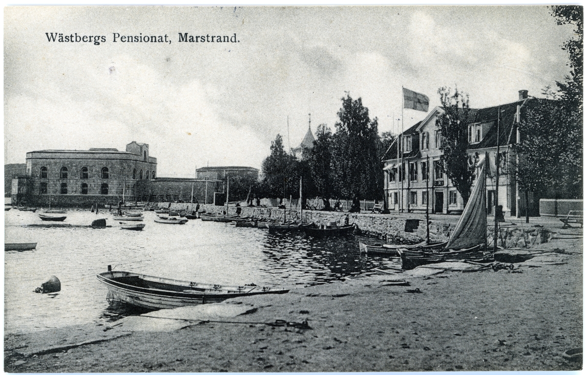 Tryckt text på kortet: "Wästbergs Pensionat, Marstrand."
