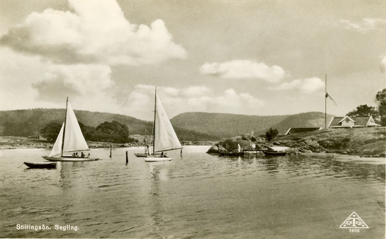 Enligt Bengt Lundins noteringar: "Stillingsön. Två segelbåtar i viken".