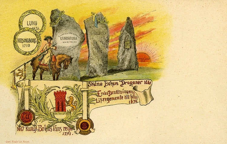 Enligt Bengt Lundins noteringar: "Heraldiskt kort. Kungl. Bohus reg. Hederstecken".