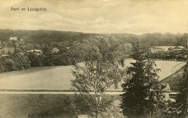Enligt Bengt Lundins noteringar: "Parti av Ljungskile. Göteborgsvägen med Hälle".