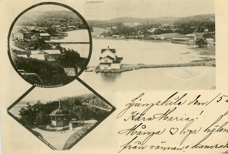 Enligt Bengt Lundins noteringar: "Ljungskile. Från Simmersberg. Restaur-park. Badhus".