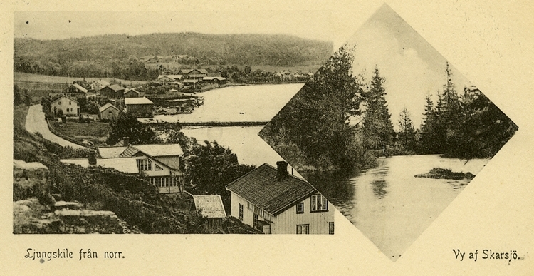 Enligt Bengt Lundins noteringar: "Ljungskile från norr. Vy af Skarsjö".