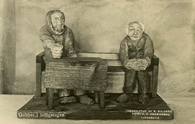 Vykort. "Gubbar i fattigstugan" enligt givarens notering