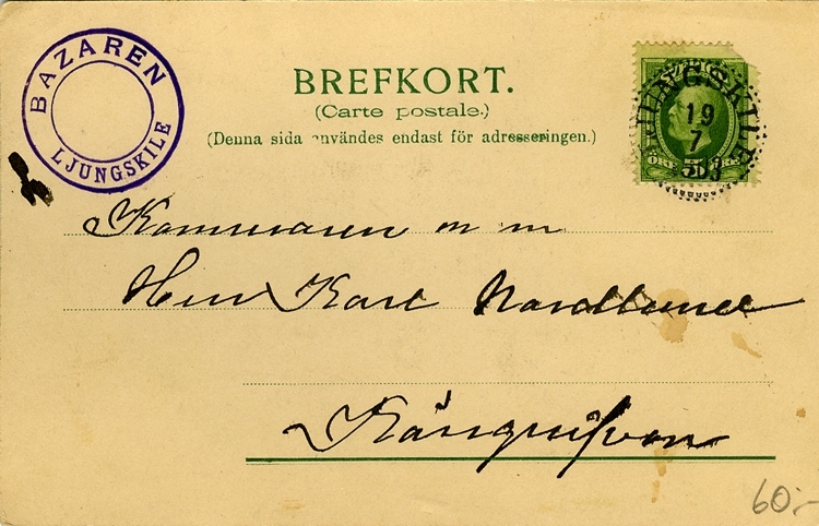 Enligt Bengt Lundins noteringar: "Rund stämpel: Ljungskile basaren".