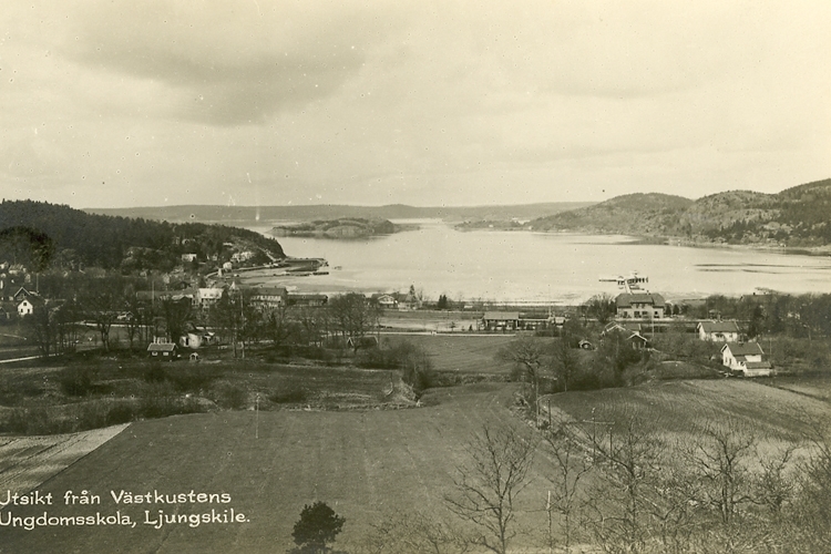 Enligt Bengt Lundins noteringar: "Utsikt från Västkustens Ungdomsskolan, Ljungskile".