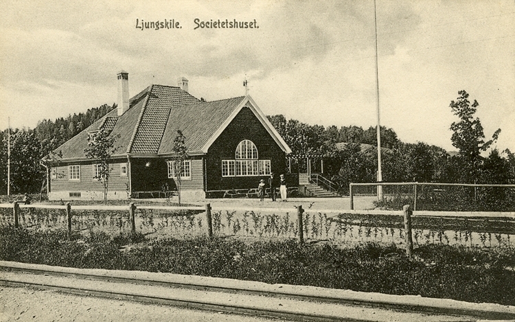 Enligt Bengt Lundins noteringar: "Ljungskile. Societetshuset. Järnvägsspår".