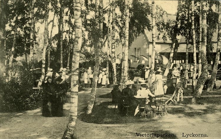 Enligt Bengt Lundins noteringar: "Viktoriaparken med folk. Lyckorna".
