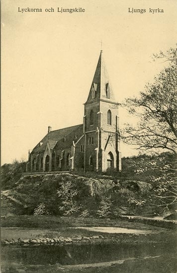 Enligt Bengt Lundins noteringar: "Ljungs kyrka med Ljungån och promenaden".