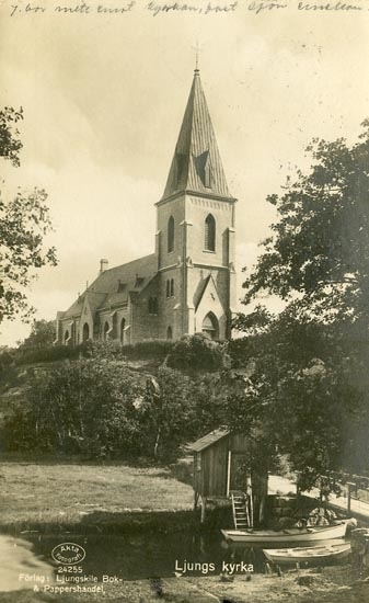 Enligt Bengt Lundins noteringar: "Ljungs kyrka med båt och båthus".
