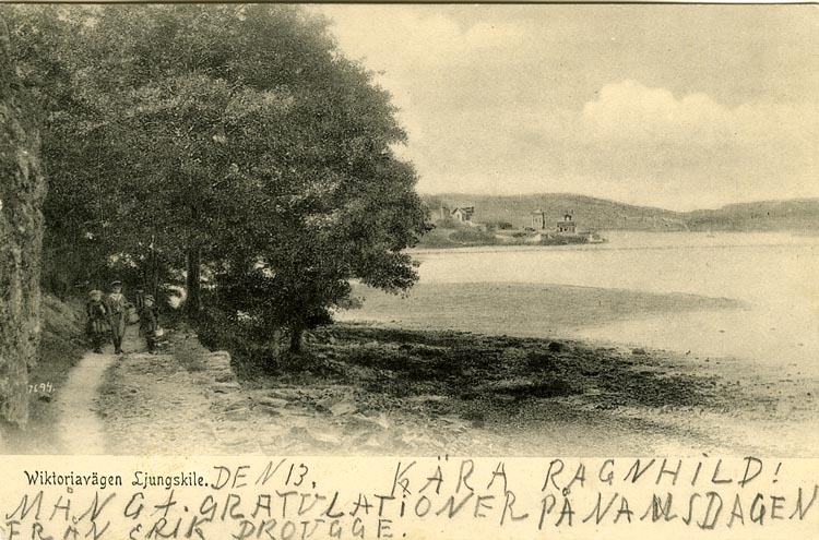 Enligt Bengt Lundins noteringar: "Wiktoriavägen, med Lyckornas brygga i bakgrunden".