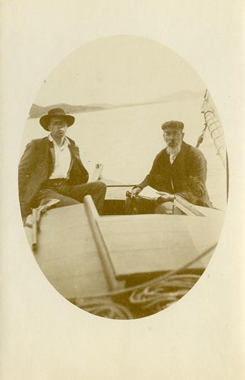 Enligt Bengt Lundins noteringar: "Thure och fadern Carl-Anton ombord i sin segelbåten vid Ljungskile".