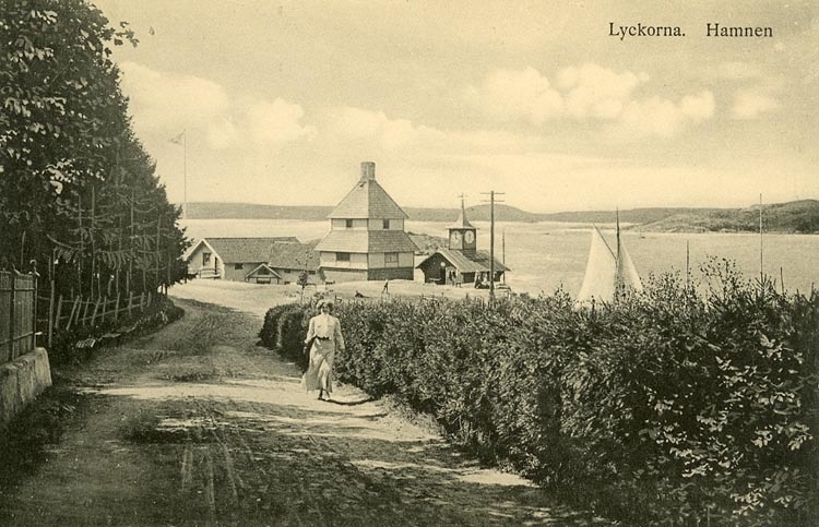 Enligt Bengt Lundins noteringar: "Lyckorna. Hamnen. En dam går uppför backen".