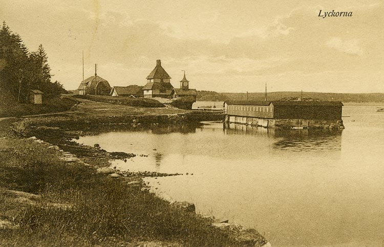Enligt Bengt Lundins noteringar: "Lyckorna. Ångbåtsbron med badhus från öster".