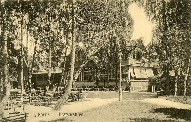 Enligt Bengt Lundins noteringar: "Badrestauranten. Lyktstolpe. Lyckorna".