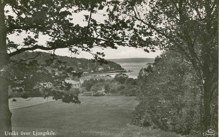 Enligt Bengt Lundins noteringar: "Parti av Ljungskile. Utsikt mot centrum och Valås".