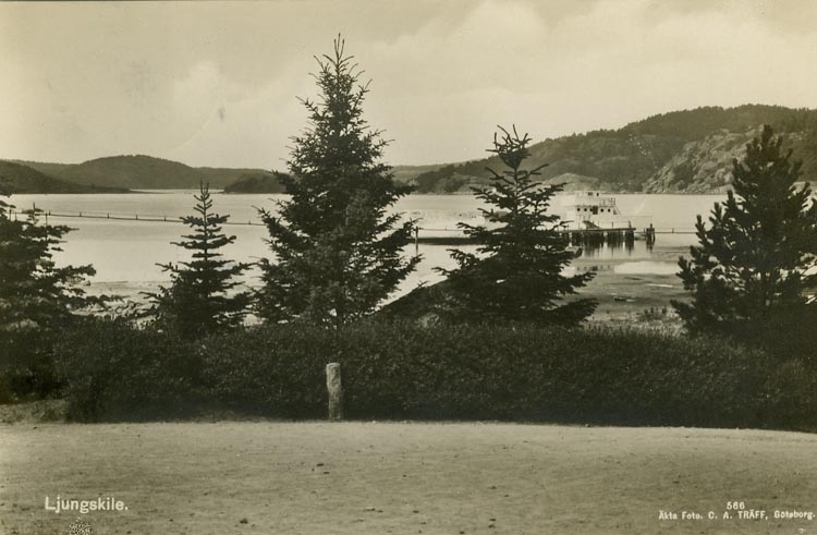 Enligt Bengt Lundins noteringar: "ECK:s brygga med Linnea bakom granar. Ljungskile".