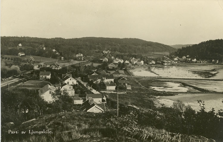 Enligt Bengt Lundins noteringar: "Parti av Ljungskile. Från Vällerödsberget".