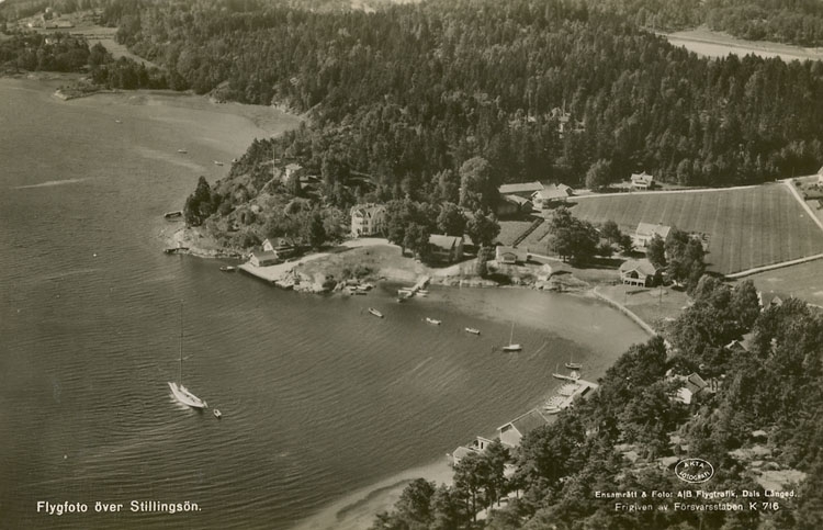 Enligt Bengt Lundins noteringar: "Flygfoto över Stillingsön"