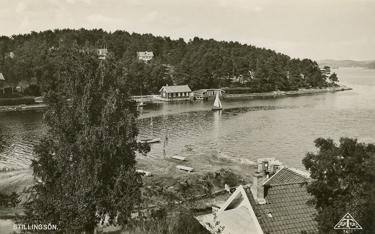 Enligt Bengt Lundins noteringar: "Stillingsön. Utsikt från Skansberget"