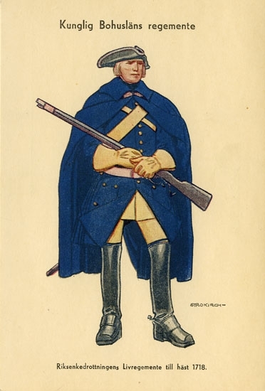 Enligt Bengt Lundins noteringar: "Kungliga Bohusläns regemente. Riksenkedrottningens livregemente till häst. 1718".