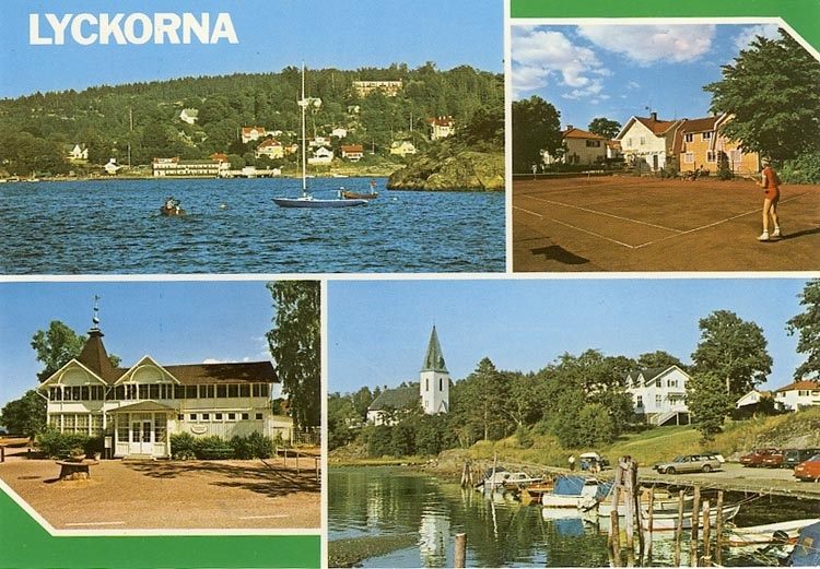 Enligt Bengt Lundins noteringar: "Lyckorna. Strand. Tennisbana. Restaurang. Bryggor.