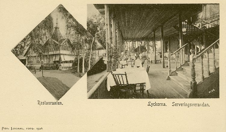 Enligt Bengt Lundins noteringar: "Restauranten och serveringsverandan. 2-Bild".