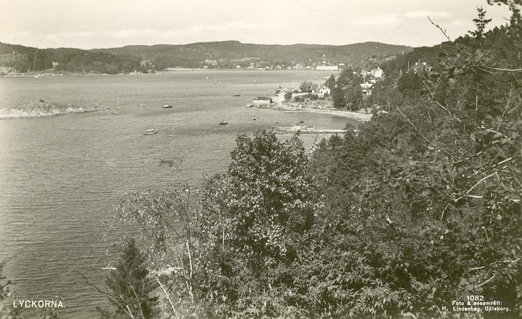 Enligt Bengt Lundins noteringar: "Lyckorna. Vy från Tomtebo mot ångbåtsbryggan".