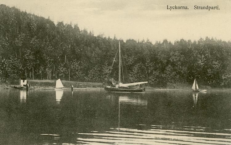 Enligt Bengt Lundins noteringar: "Strandparti. Kungsparken med segelbåt".