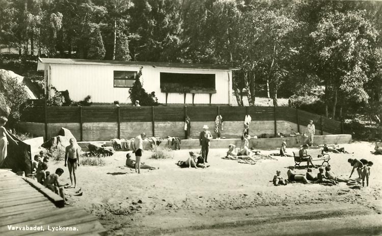 Enligt Bengt Lundins noteringar: "Varvsbadet. Hus i bakgrunden. Lyckorna".