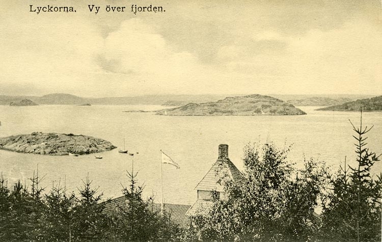 Enligt Bengt Lundins noteringar: "Lyckorna. Vy över fjorden. Ljungholmen. Varmbadhus".