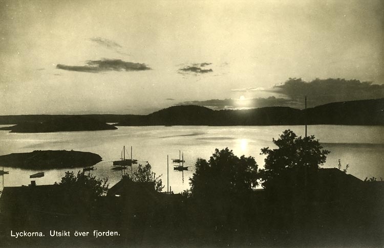 Enligt Bengt Lundins noteringar: "Lyckorna. Utsikt över fjorden. Siluetter".